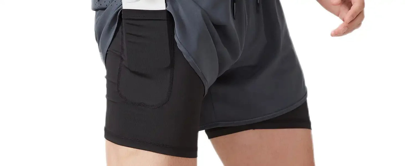 2-in-1 Double Layer Running Shorts - Quick-Dry, Elastic Waist, Multi-Pocket