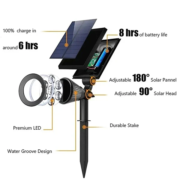 2-in-1 Solar Spotlights - IP65 Waterproof Outdoor Landscape & Security Lights for Yard, Garden, Pathway, Walkway - 4/7/18 LED Beads for Enhanced Brightness - 4 Leds / Warm White / 1 pc