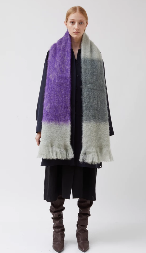This cozy scarf from the Jil Sander+ collection is made from a plush blend of mohair and wool. Crafted in Spain, it features a colorblocked design that strays from the designer's minimalist aesthetic with a joyful pop of orange.