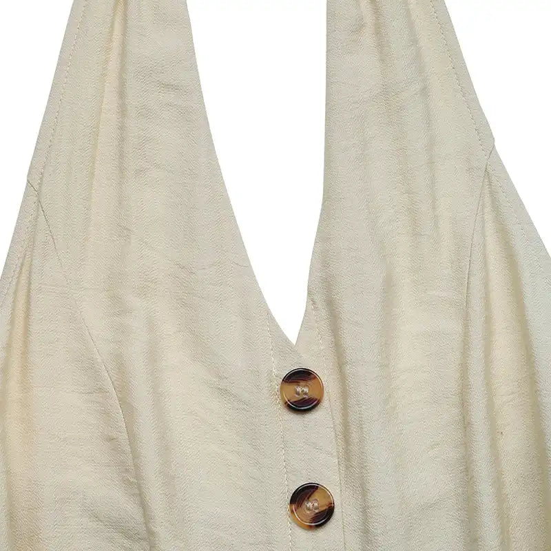 2025 Summer Simple Breathable Backless Button Jumpsuit