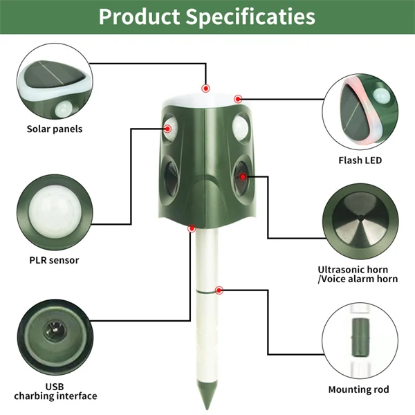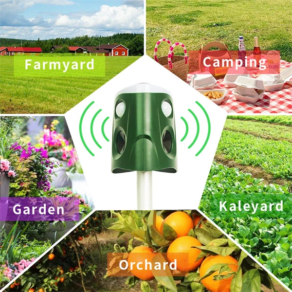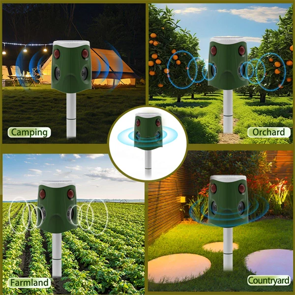 360° Multi-Function Bird Repeller – Ultrasonic Animal Deterrent with Triple-Speaker Design Outdoor Pest Control for Mice, Birds, and Squirrel