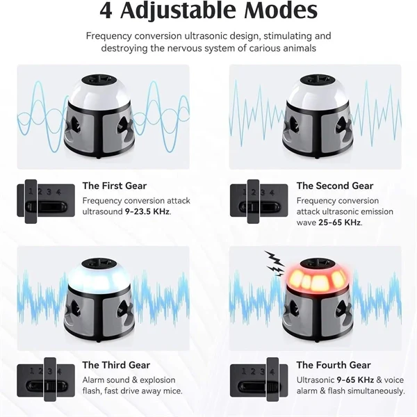 360° Ultrasonic Rodent Repeller – 4-Mode Mouse & Rat Deterrent with Flashing Lights & Alarm, Indoor Pest Control for Mice, Cockroaches, Ants, Spiders - 1 pc