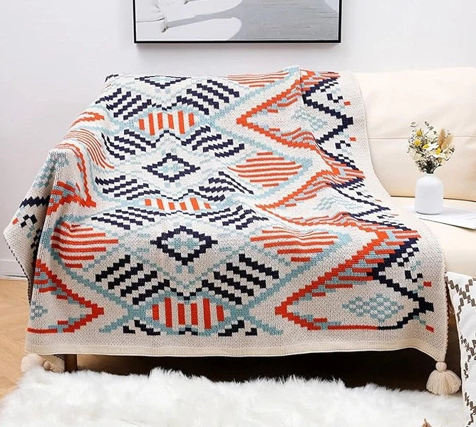 Bohemian Throw Blanket Tassels Soft Knitted Throw Blanket