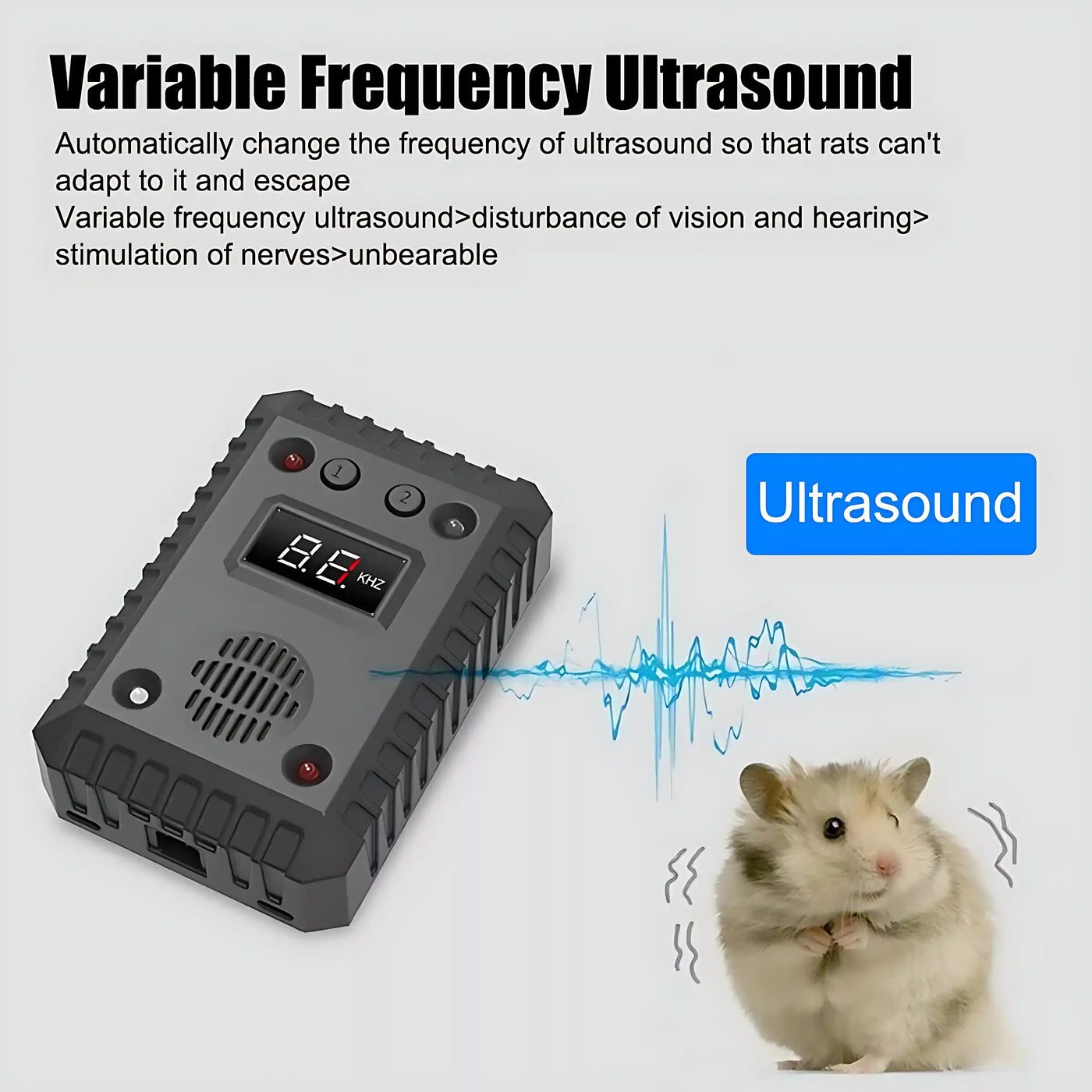 Stop rodents and pests instantly with the Ultrasonic Pest Repellent! Designed for cars, homes, and storage areas, this compact device uses variable-frequency ultrasonic waves (9-65kHz) and 8 LED flashing lights to drive away mice, squirrels, and insects—no chemicals or traps.
