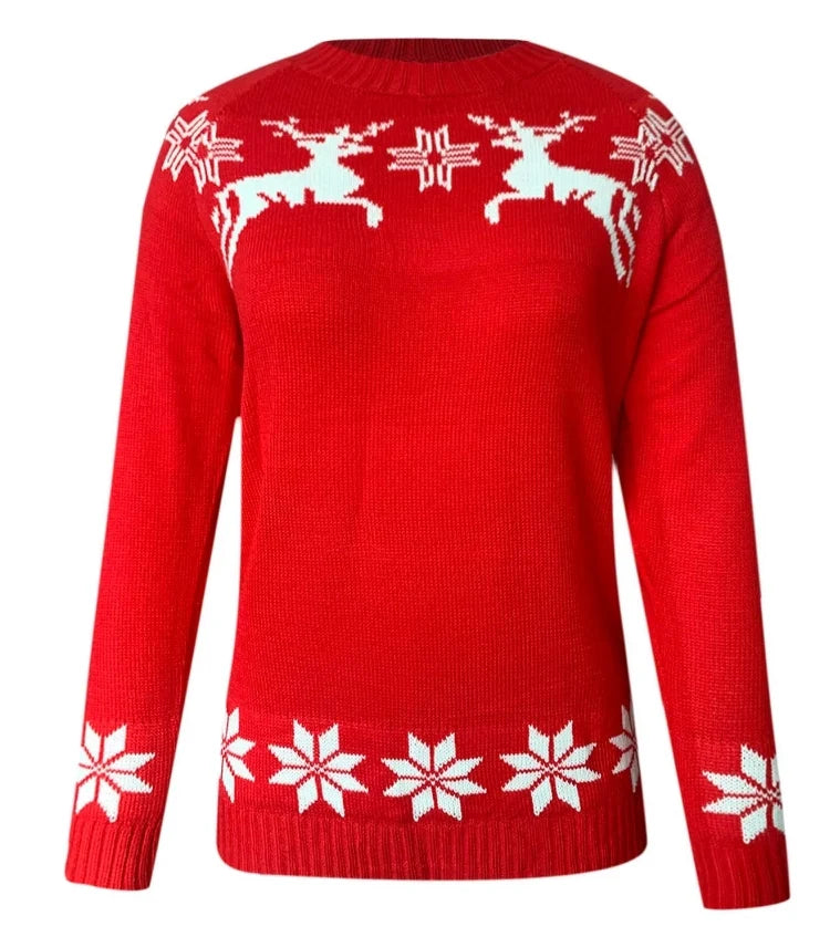 Christmas Women Knitted Sweater Tops Winter Casual Retro Color Contrast Print Pullover Jumper Sweatshirts