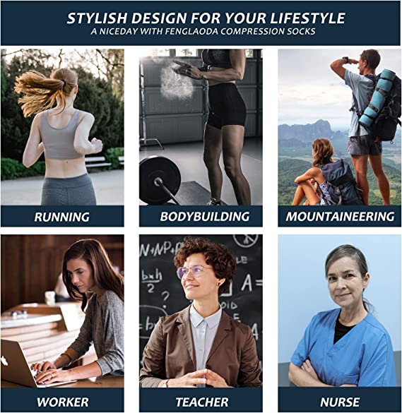 SOCKS FOR WOMEN: 20-30mmHg circulation compression socks are with moderate compression and are recommended by doctors and trainers. Nurse compression socks create the highest support pressure at the ankle and gradually decrease along the legs, and improve blood circulation and relieve leg pain , especially for pregnant women