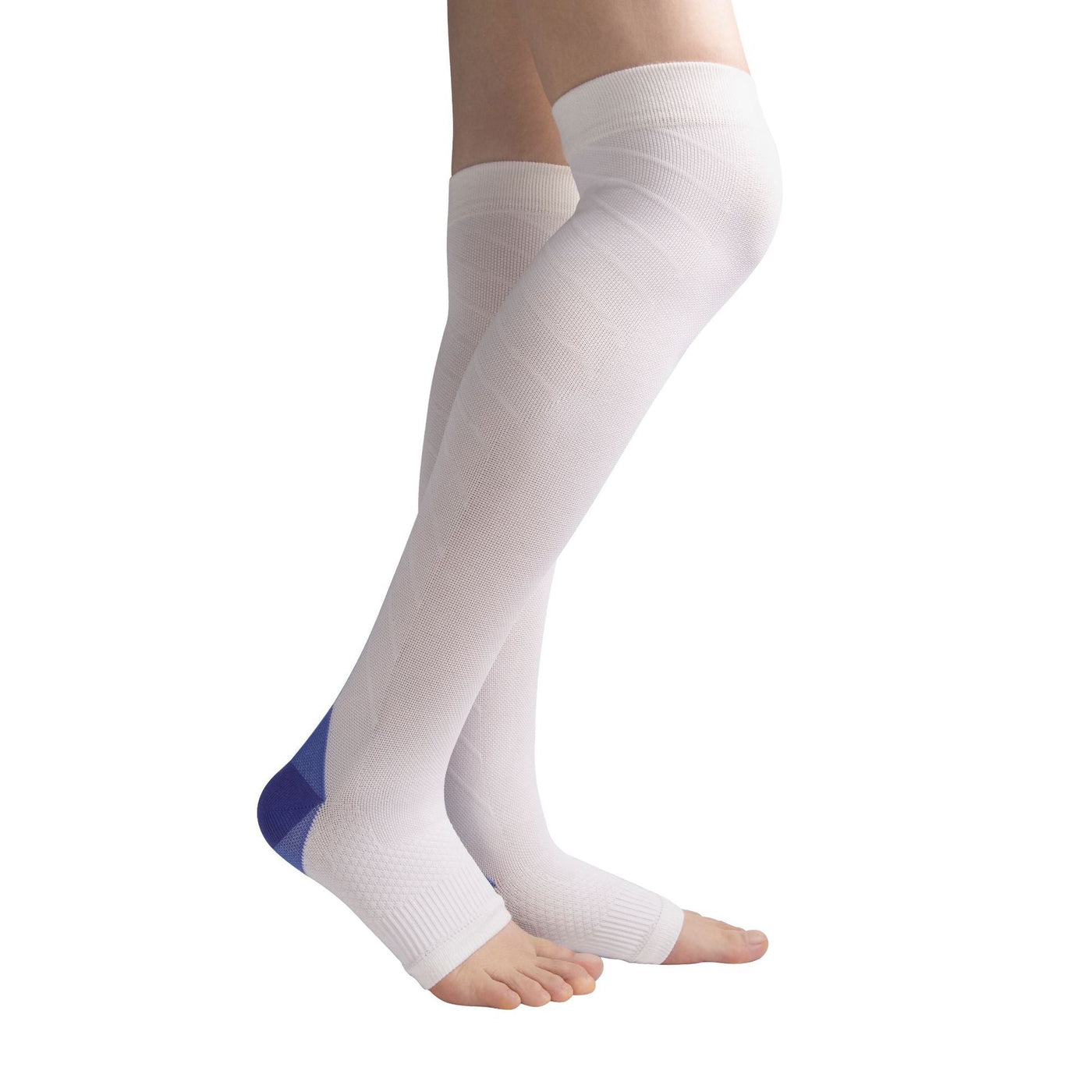 Pressure Socks Over Knee Open Toe White Running Marathon Riding Sports Outdoor - White Blue / S