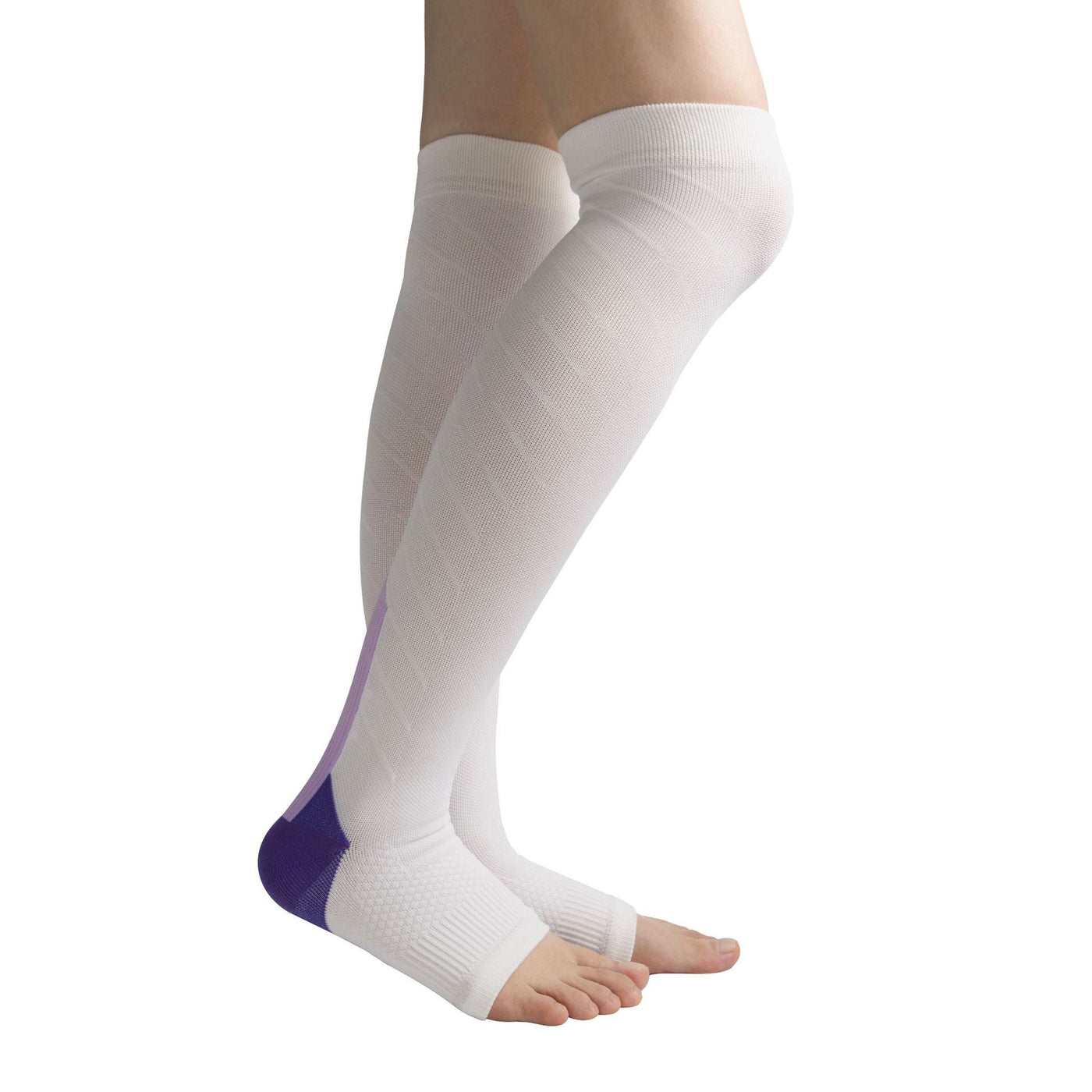 Pressure Socks Over Knee Open Toe White Running Marathon Riding Sports Outdoor
