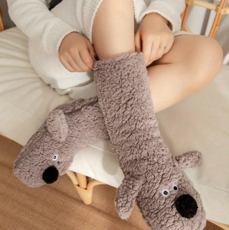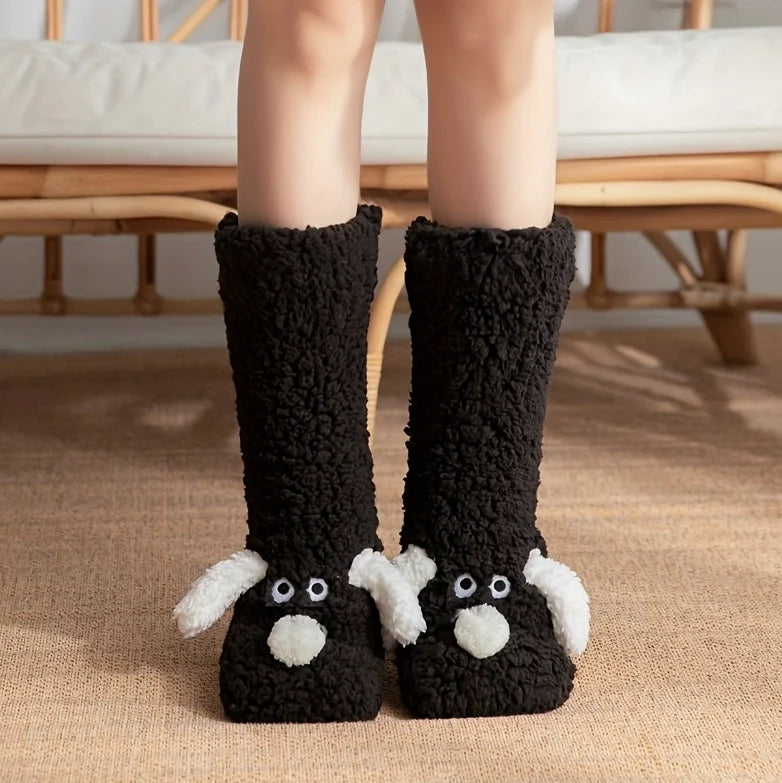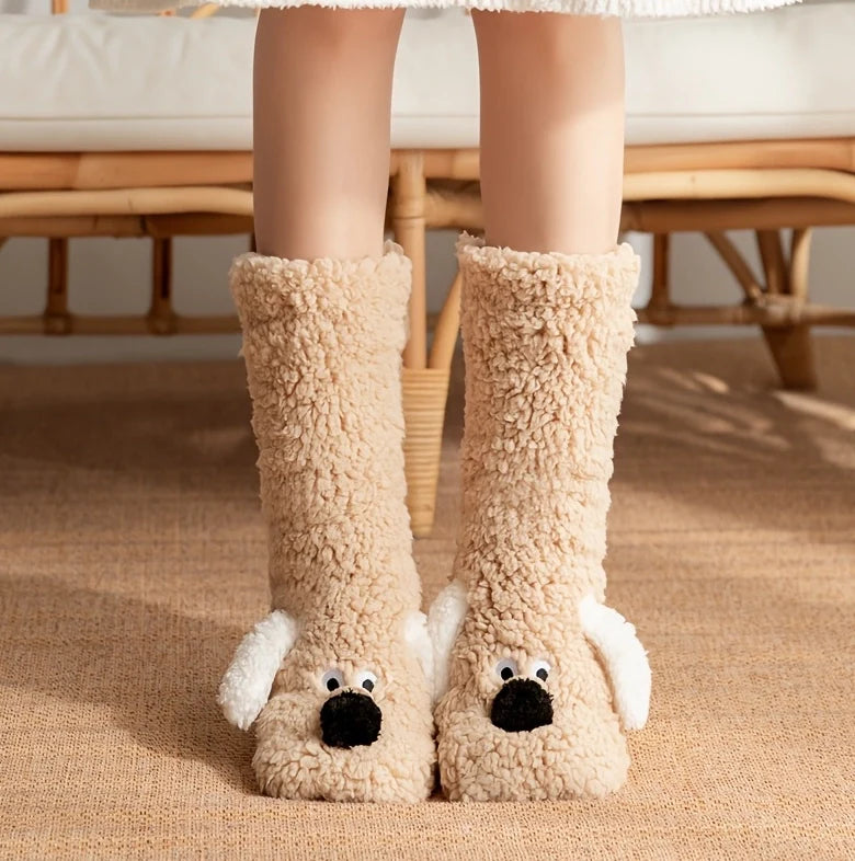 Cute Cartoon Dog Floor Socks Funny Socks Winter Warm Non-slip Plush Socks For Women