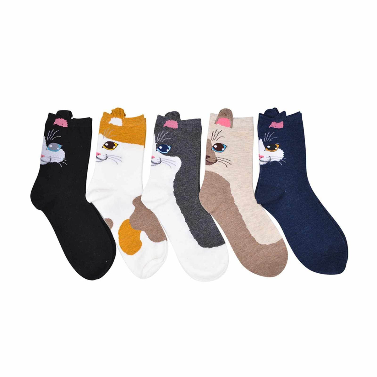 Cute Cat Ear Cartoon Animals Patterns Series Funny Socks Warmer Funny Socks Christmas Gift - 5 Pairs Pack / Women's Shoe Size 5-10