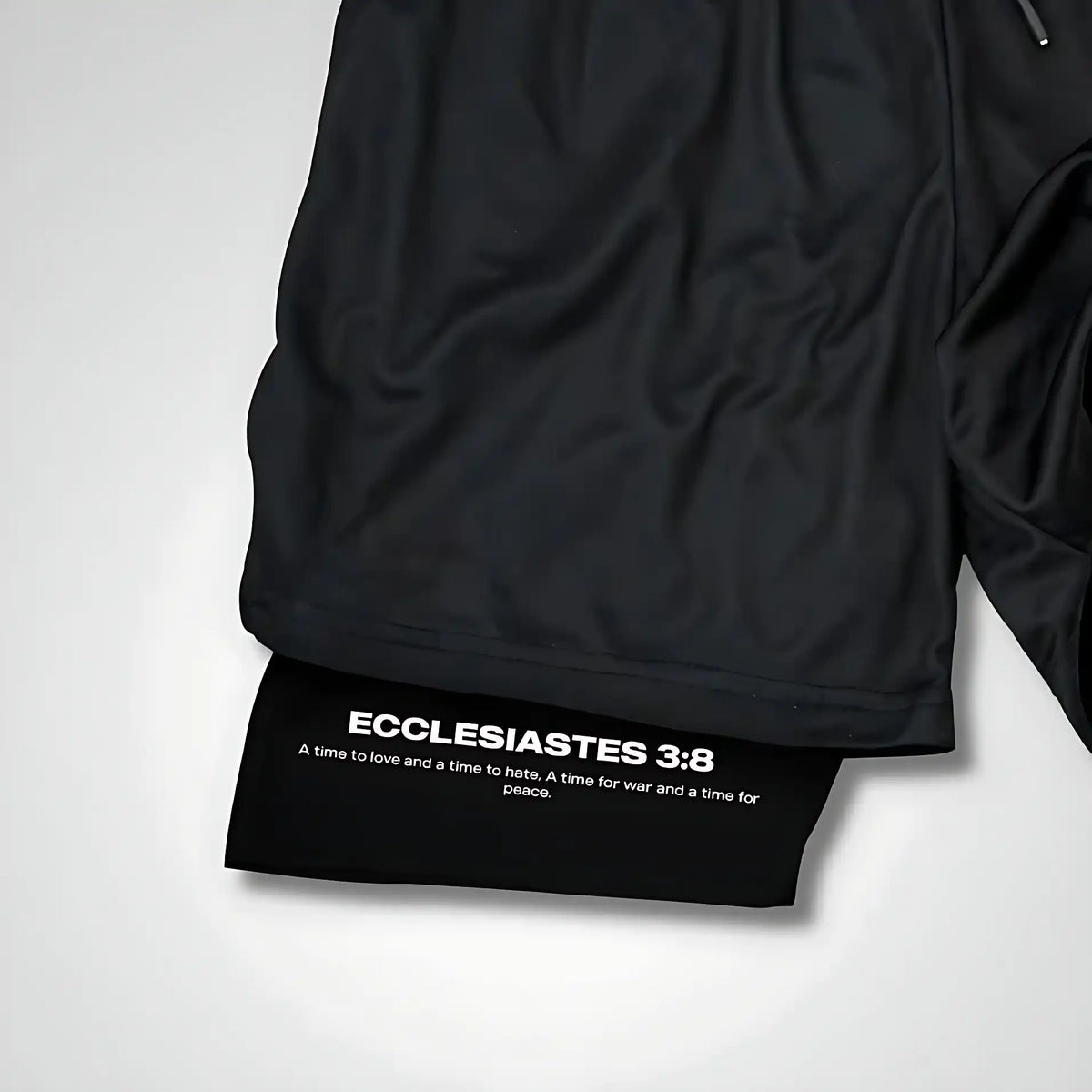 These performance shorts feature the inspiring Bible verse from Ecclesiastes 3:8, combining style with functionality to enhance your workout experience.