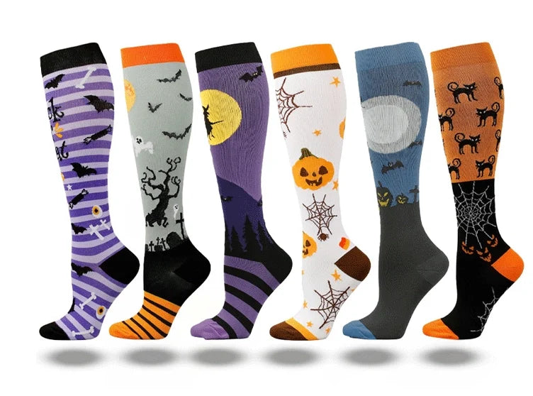 ROYALUCK 6 Pairs Halloween Cute and Fun Running Compression Socks for Men and Women
