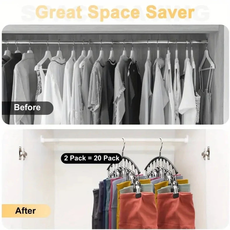 Pants Hangers Space Saving: No assembly is required. Leggings organizer for closet with clips is integrated and can be hung directly in the closet as soon as you open the package. You can hang them on the wall, closet, door, and everywhere you want. No need to take up any additional space, which is convenient to use daily.