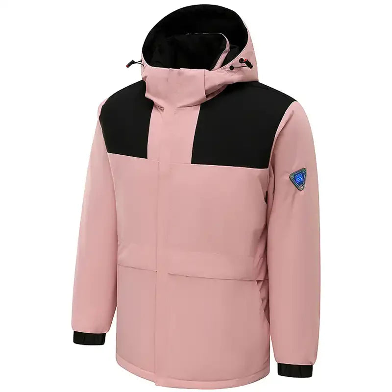 Heated Jacket Waterproof USB Hooded Men Women Outdoor - Pink (WITHOUT POWERBANK) / M