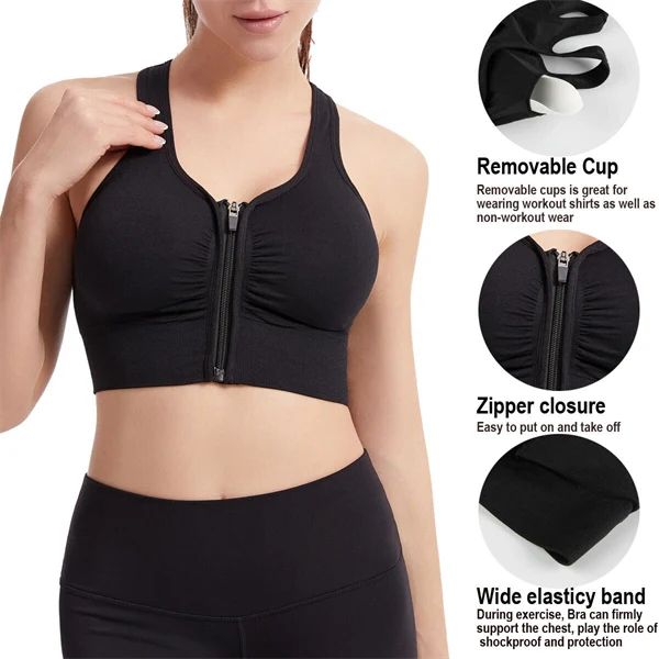 Plus Size Sports Bra for Women – Breathable Supportive Yoga and Gym Workout Top - Black / S
