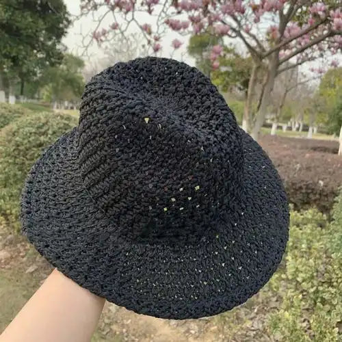 - A wide-brimmed straw hat.