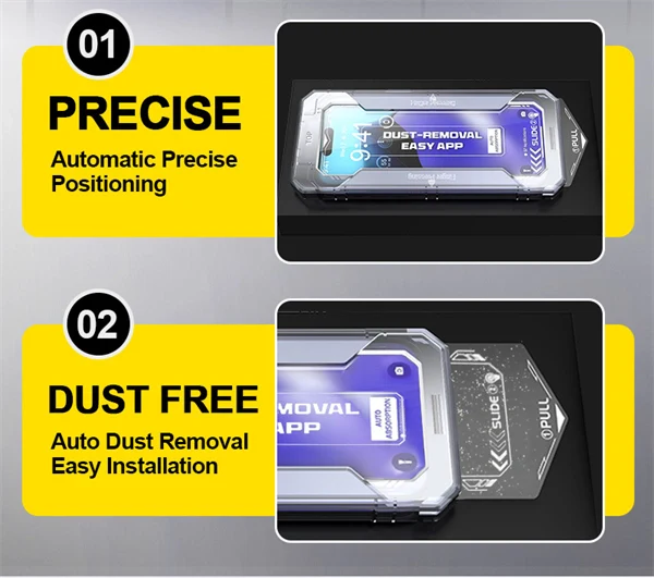 Dust-Free, Precise Positioning: The innovative Dust-Free Removal App ensures no dust is left behind during installation. Simply place the applicator, remove the film, and press to set the protector perfectly in place. No more messy installation!