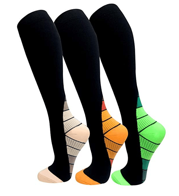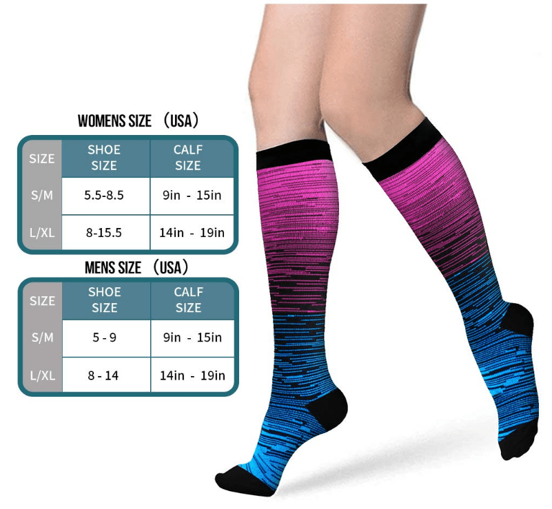 - COMPRESSION BENEFITS �Compression techniques are scientifically proven to provide relief of varicose veins, Calf Compression or other leg swelling issues. Usable throughout the clock, our socks help prevent Blood clots after surgery & Fits well unlike socks with inflexible fabrics. The compression & support is perfectly located on Heel Foot Calves and the toe area wont squeeze your aching toe joints. Moisture wicking properties rapidly air dry in a few hours.