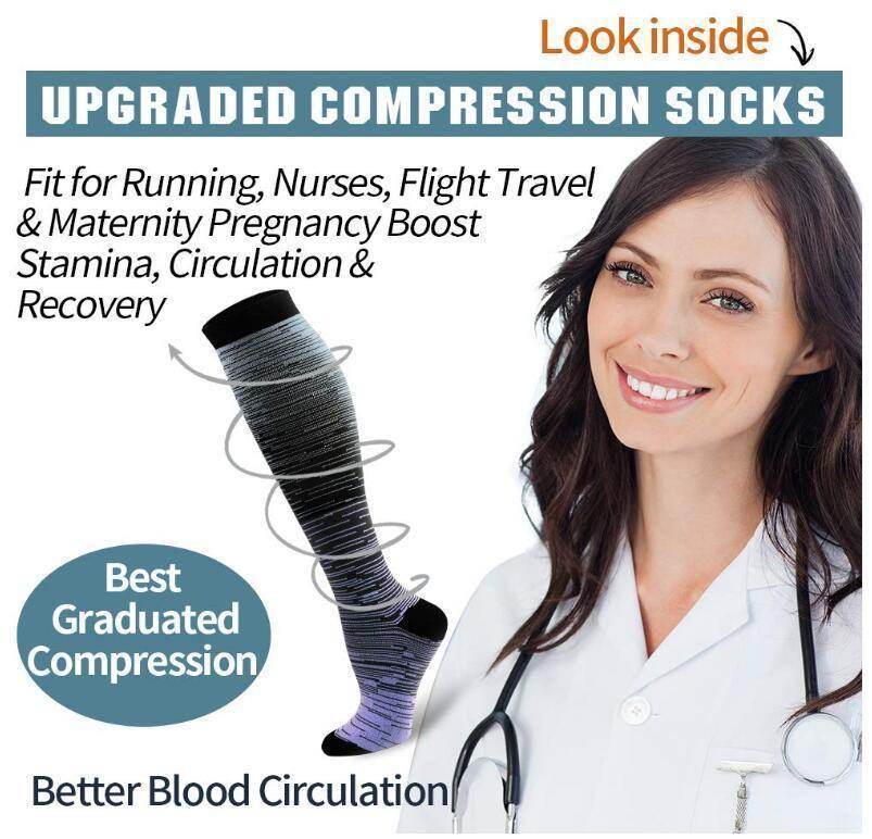- BEATING OUT THE COMPETITION -our knee high compression socks' material are upgraded with nylon percentage from 40% to 85%, Delivers 360-degree stretch for greater flexibility and durability. Breathable high performance fabric maintains an optimal temperature. moisture for maximum level of comfort. Our compression socks will bring the most comfortable feeling to you .