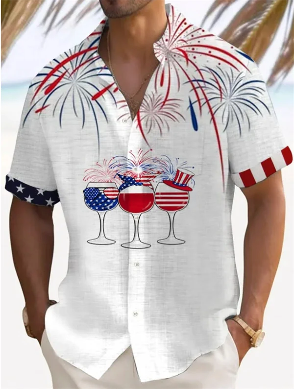 Men’s American Flag Button-Up Shirt – Patriotic Short Sleeve Hawaiian Top for 4th of July - Patriotic Cocktail / S