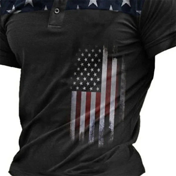 Men’s American Flag Polo Shirt – 3D Print Short Sleeve Golf Shirt, Patriotic Collared Top for Veterans, Casual, Streetwear & Holiday Outfits (Black/Blue/Purple) - Black / S