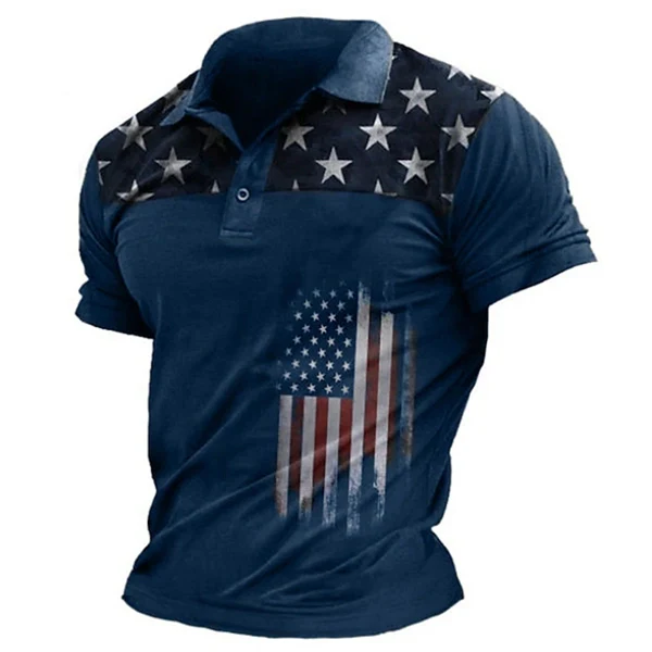 Men’s American Flag Polo Shirt – 3D Print Short Sleeve Golf Shirt, Patriotic Collared Top for Veterans, Casual, Streetwear & Holiday Outfits (Black/Blue/Purple)