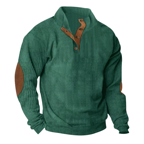 Men’s Corduroy Stand Collar Sweatshirt – Loose Fit Outdoor Pullover - Green / S