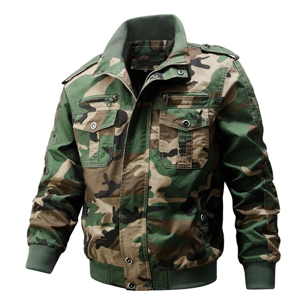 Men’s Tactical Bomber Jacket – Military-Style Workwear with Multi Pockets - Camouflage / M