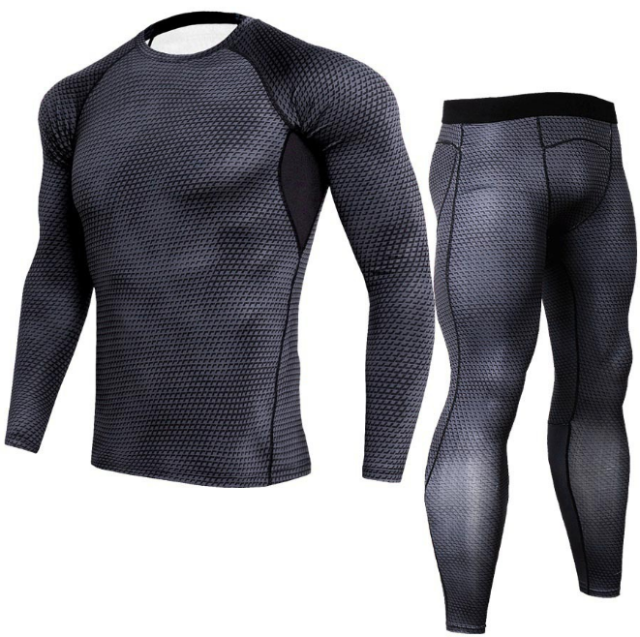 Men Snake Print Long Sleeve Quick Dry Compression T-Shirt and Tights Tops+Pants Sports Tracksuits