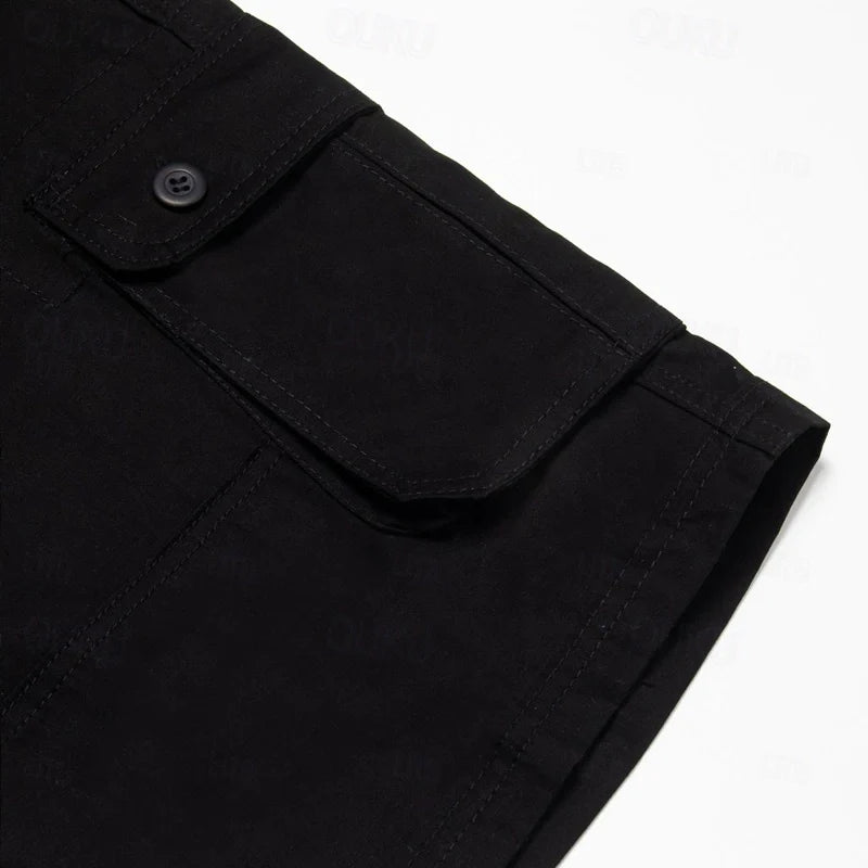 Men's Cotton Cargo Shorts - Multi-Pocket Summer Casual Shorts - Black / 29