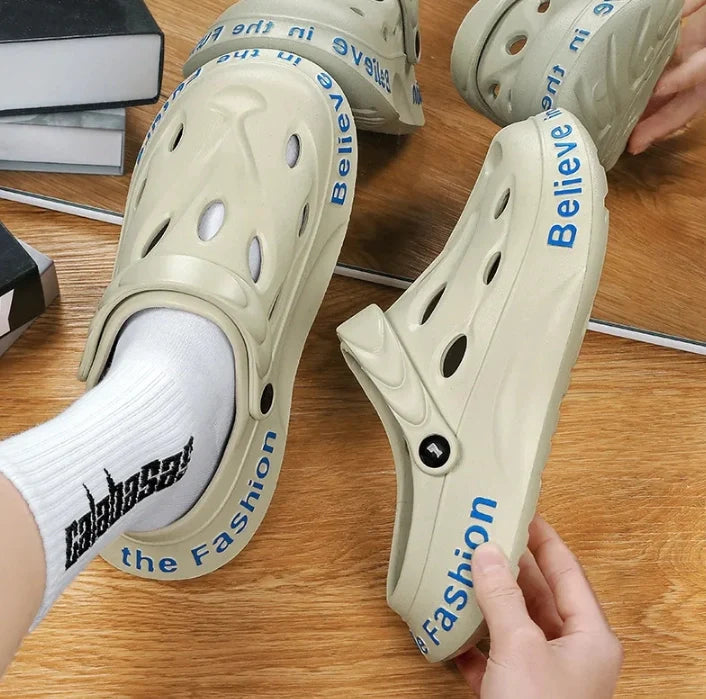 Crafted for Comfort: These men's slippers are made from lightweight and durable EVA, providing a cushioned and breathable feel for all-day wear. The platform design adds a touch of height and style, while the open-toe design allows your feet to breathe freely.