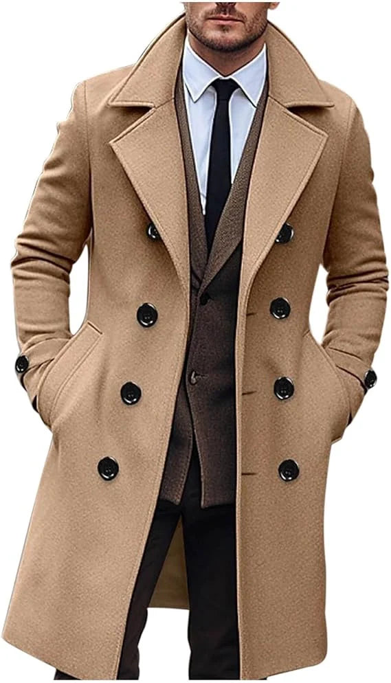Men's Slim Fit Winter Double Breasted Long Trench Coat Men's Casual Overcoats