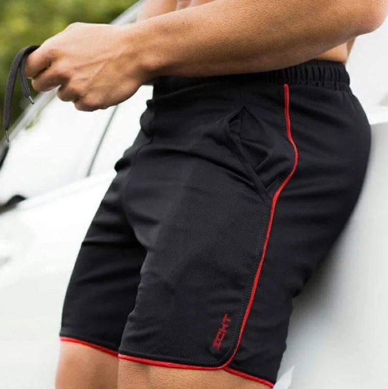 Designed with an elastic waistband and adjustable drawstring, these shorts provide a secure and customized fit for all body types. Enjoy a comfortable and snug feel that stays in place, allowing you to focus on your performance without distractions. Mens gym shorts pockets enhance convenience.