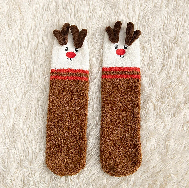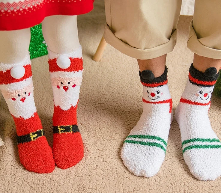 Adorable Christmas Characters: These cozy socks feature fun and festive Christmas designs, including snowmen, Santa Claus, and reindeer, adding a cheerful holiday touch to your winter wardrobe.