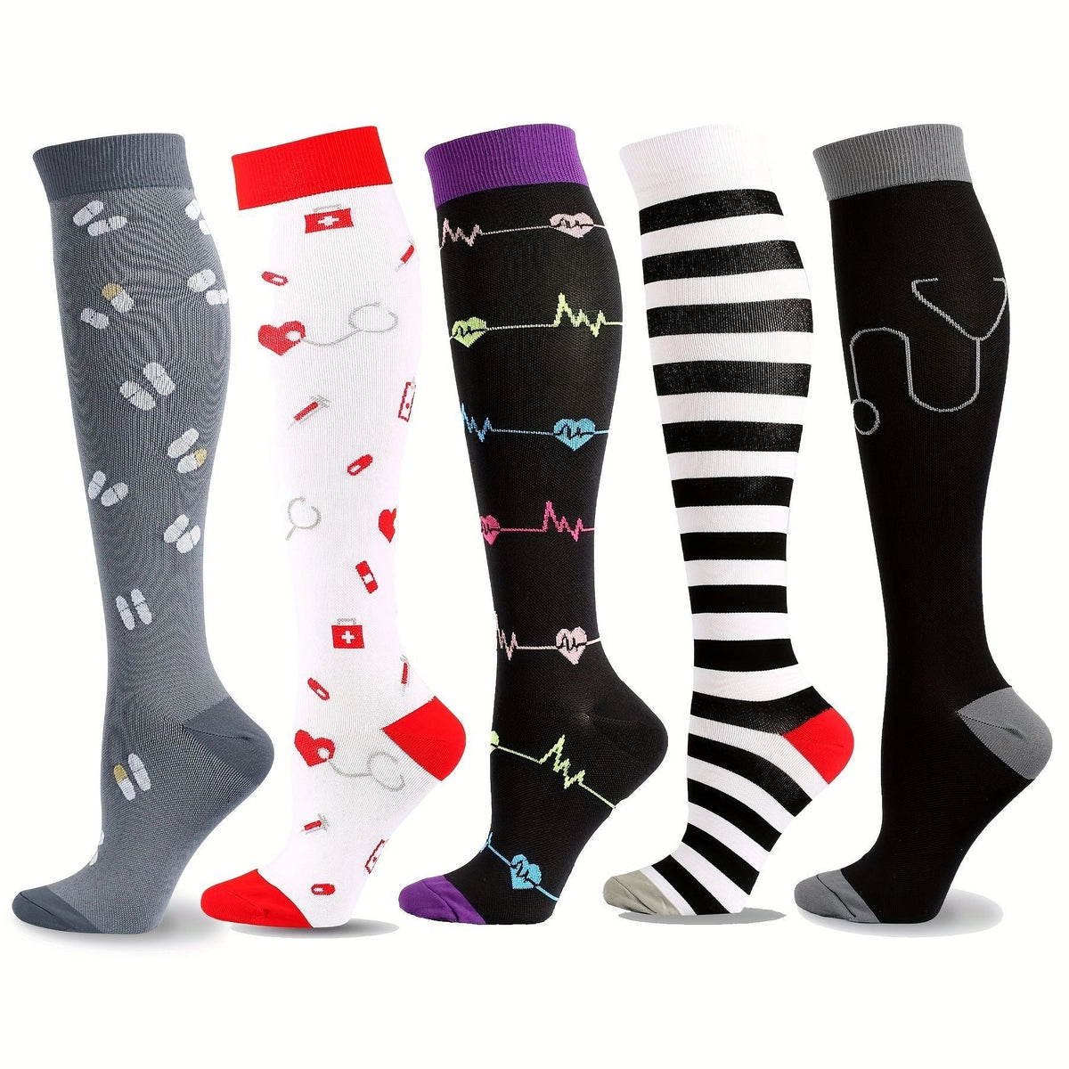 ROYALUCK 5 Pairs Medical Compression Socks for Men and Women - S/M