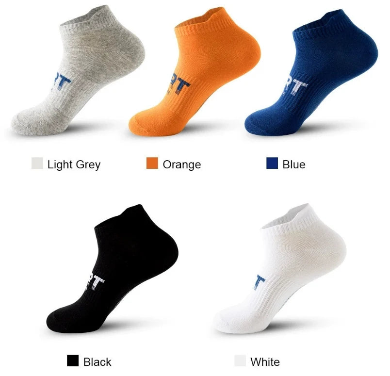 ROYALUCK 5 Pairs Mens Ankle Athletic Low Cut Sports Socks Cushioned Running Cotton Socks - All Colors