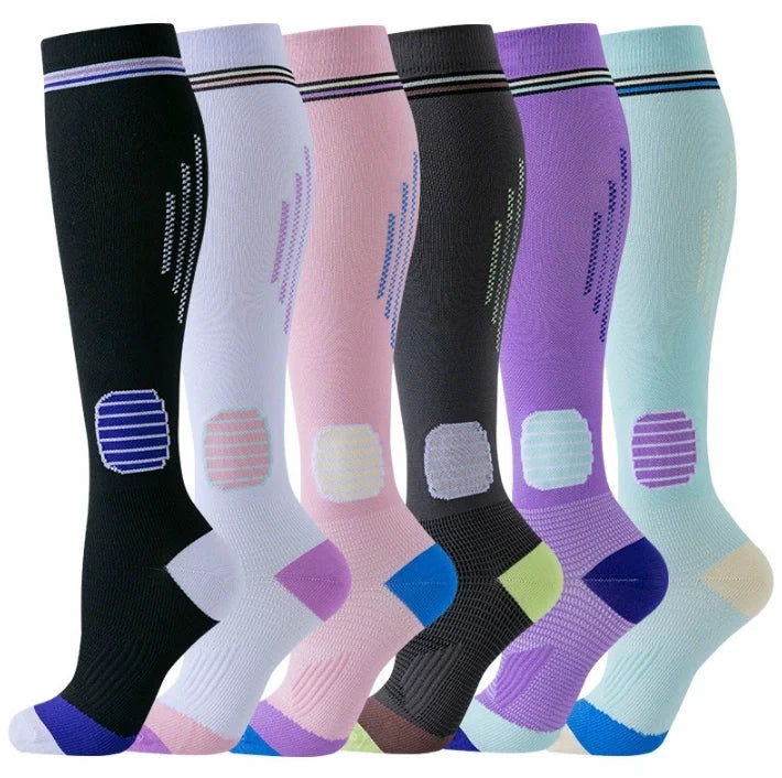 COMPRESSION SOCKS - We intend combining fashion, technology and science to bring you the triple comfort without. The material of our compression socks are upgraded with nylon percentage from 40% to 85%. Delivers 360-degree stretch for greater flexibility and durability. Breathable high performance fabric keeps an optimal temperature.