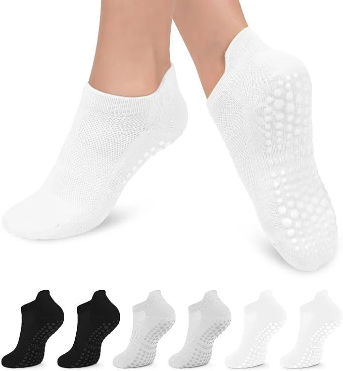 ALL-DAY COMFORT -- The soft yet durable fabric hugs your feet gently. Our yoga pilates socks are engineered with breathable cotton materials that promote airflow, keeping your feet dry and comfortable even during the most challenging exercises.
