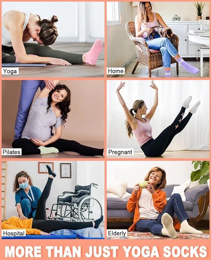 ENHANCE YOUR EXPERIENCE -- Women pilates socks are an ideal companion for a wide range of activities including yoga, pilates, bikram, barre, ballet, trampoline, studio workouts, gym sessions, and dance practices. Not only that, they serve as excellent hospital socks, floor socks for daily use, and are especially beneficial for activities like physiotherapy, elderly care, and during pregnancy, effectively helping to reduce the risk of falls on stairs or slippery floors.