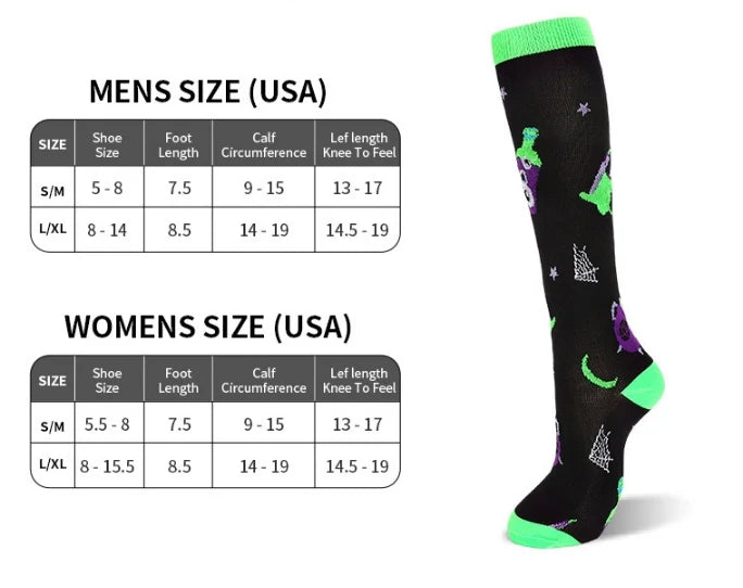 Perfect Halloween Gift: With their eye-catching designs and practical benefits, these compression socks make a great Halloween gift for friends, family, or fitness enthusiasts looking to add a festive touch to their wardrobe.