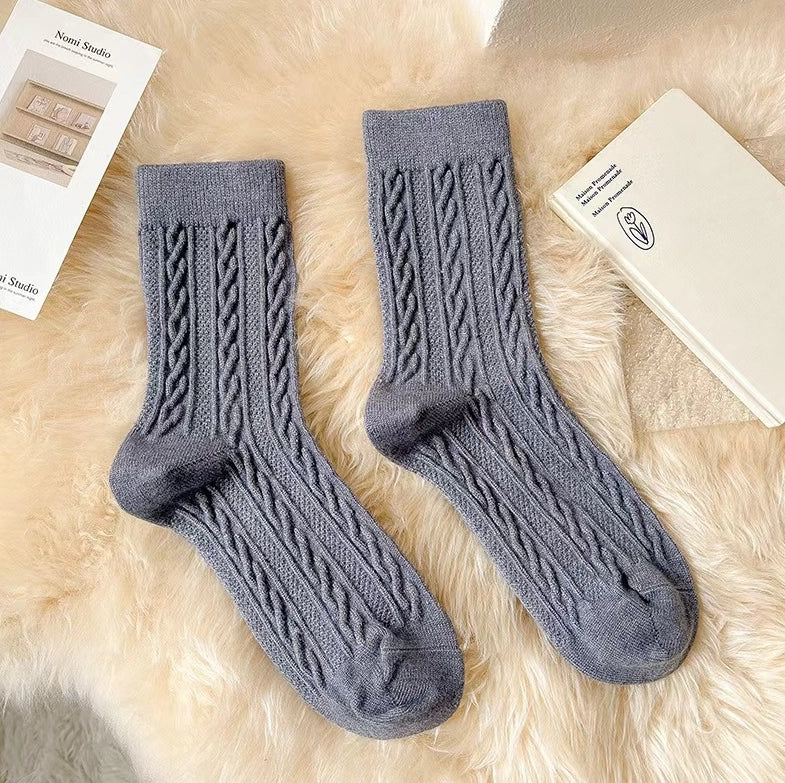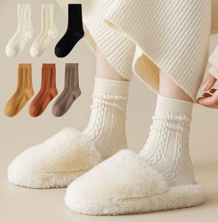 ROYALUCK 6 Pairs Winter Cotton Socks Solid Color Mid-Calf Socks