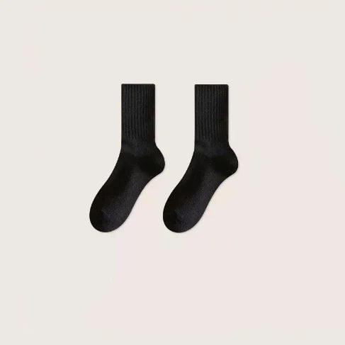 Whether you're heading out for a chilly autumn walk or cozying up indoors, these striped solid color mid-calf socks are the perfect addition to your fall and winter wardrobe. Stay warm, comfortable, and stylish all season long!
