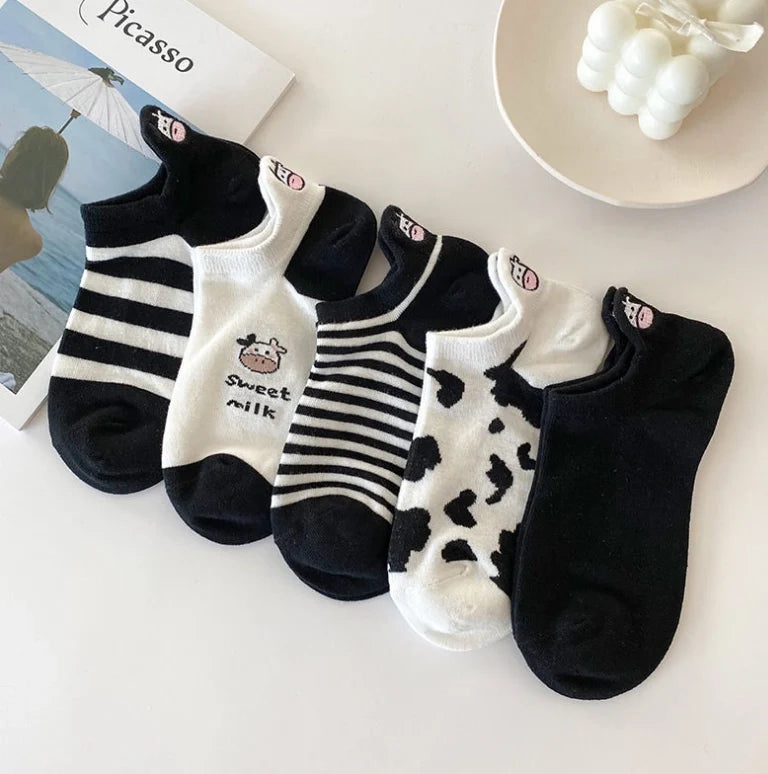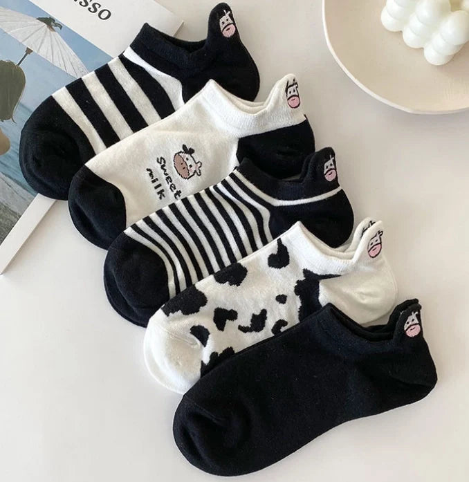 Korean Cartoon Style:The charming cow patterns and minimalist design make these socks a cute addition to any outfit, adding a touch of whimsy to your style.