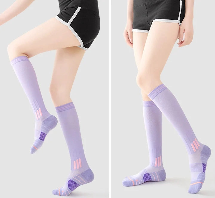 COMPRESSION SOCKS - We intend combining fashion, technology and science to bring you the triple comfort without. The material of our compression socks are upgraded with nylon percentage from 40% to 85%. Delivers 360-degree stretch for greater flexibility and durability. Breathable high performance fabric keeps an optimal temperature.