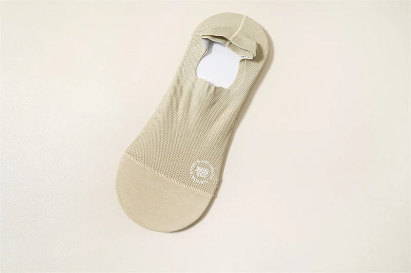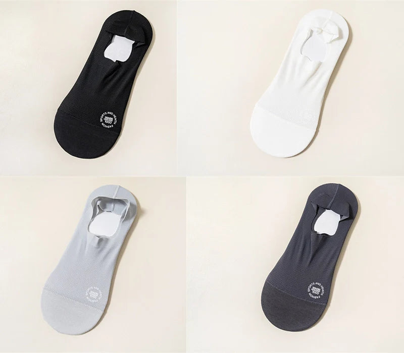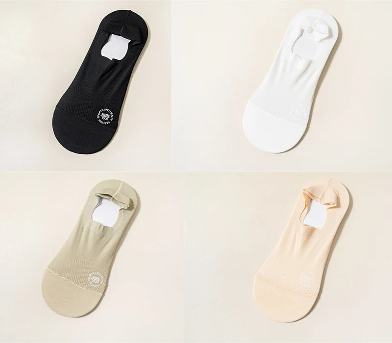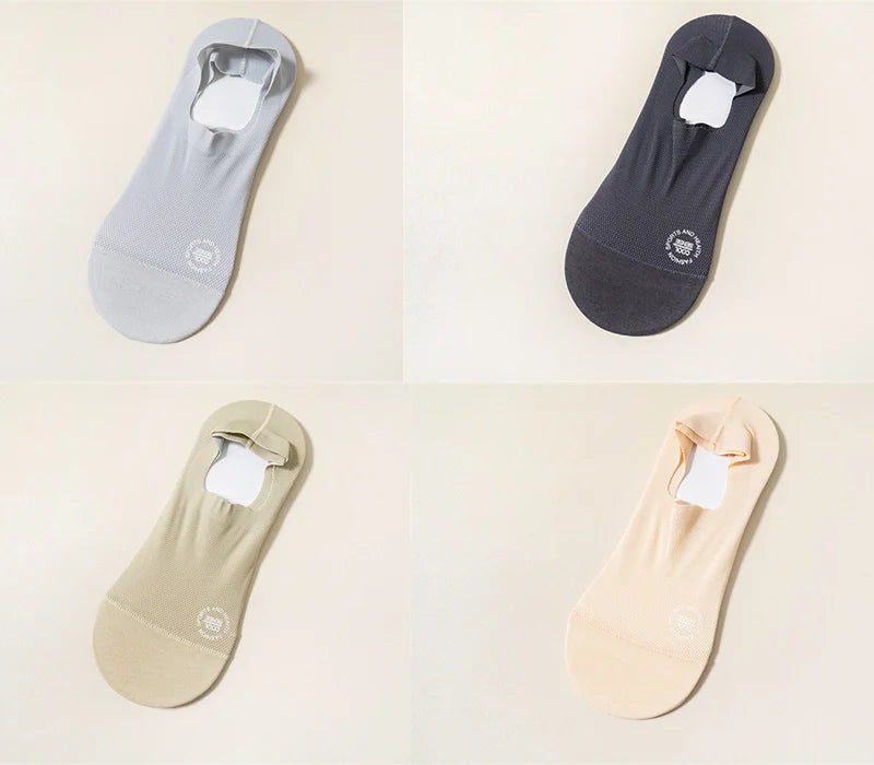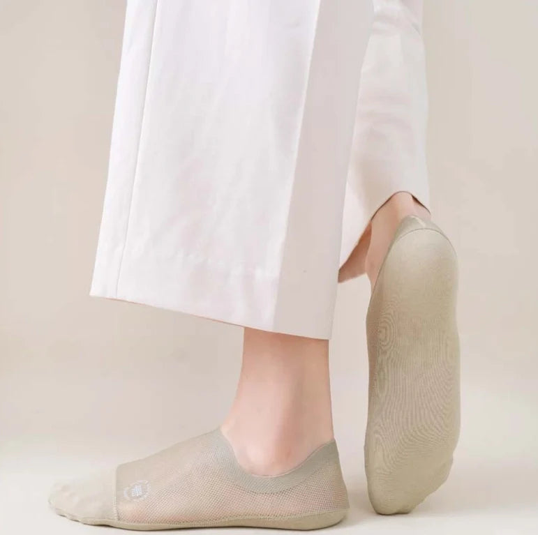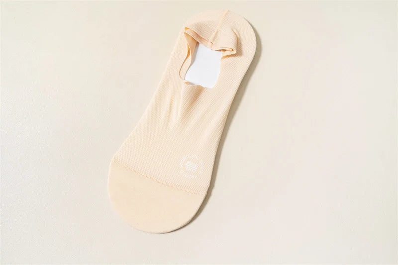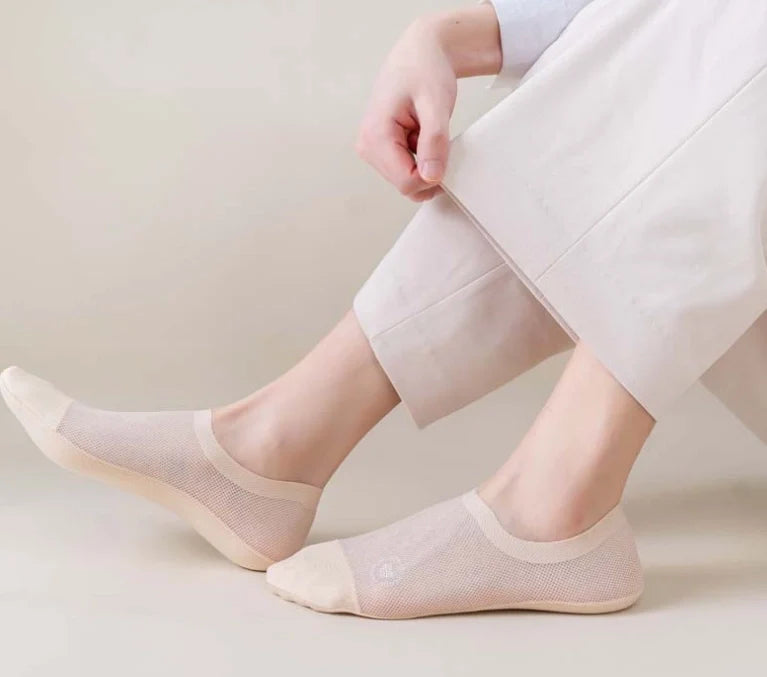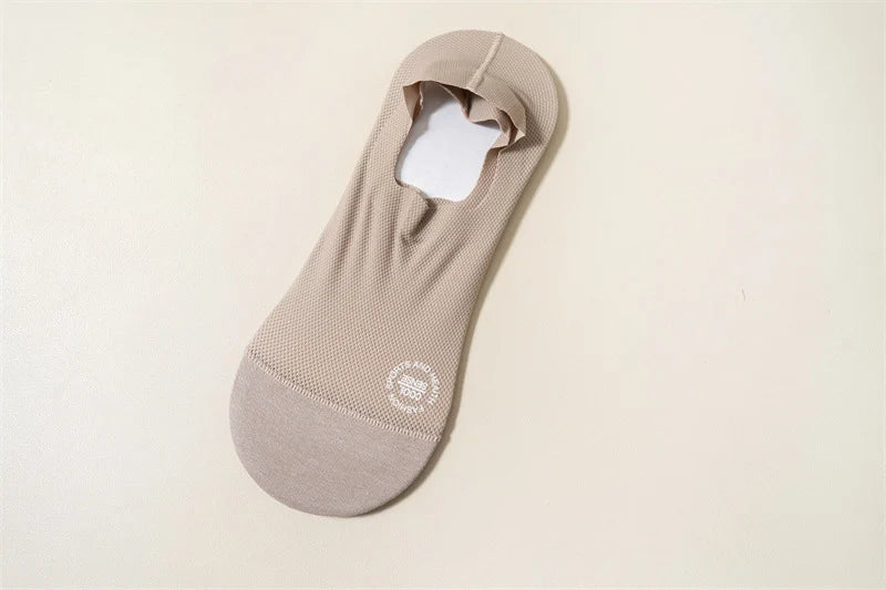 【Anti-Slip Design】This High-end Ice Silk Mesh Socks has a thick and wide silicone pad, which prevents the back from slipping and guarantees a comfortable fit.