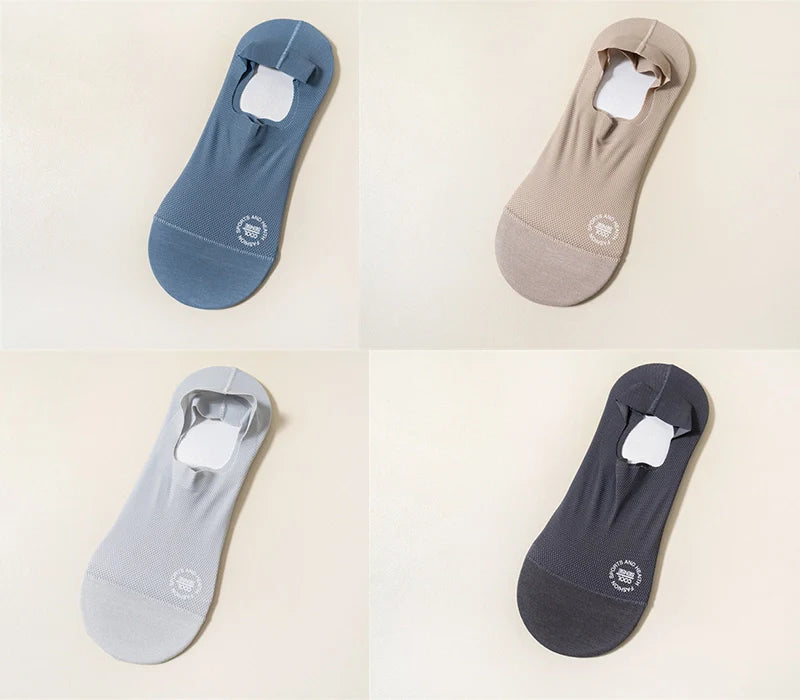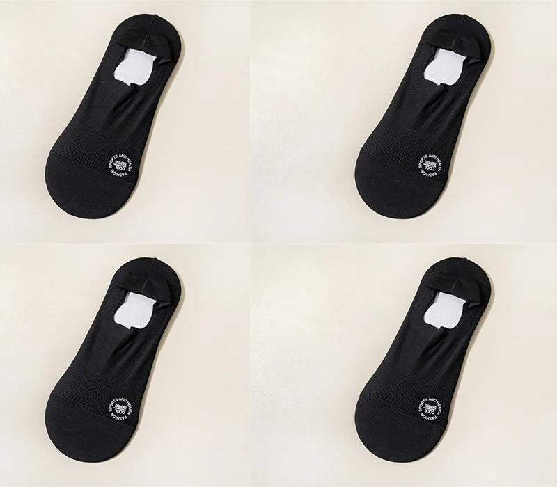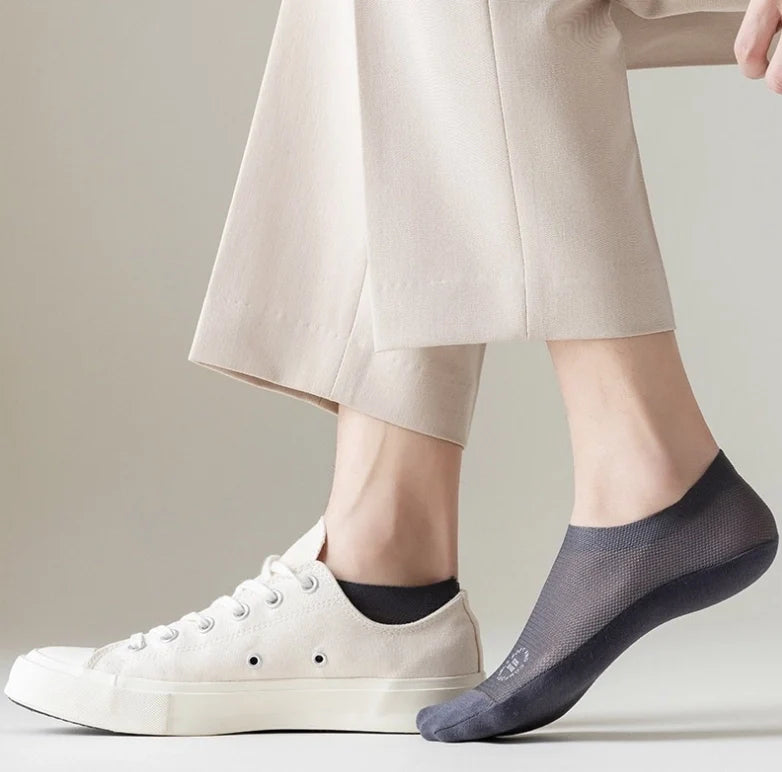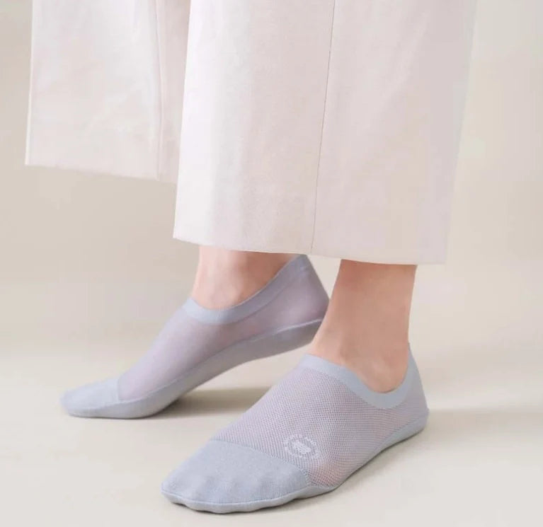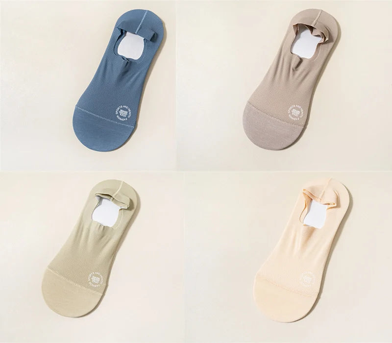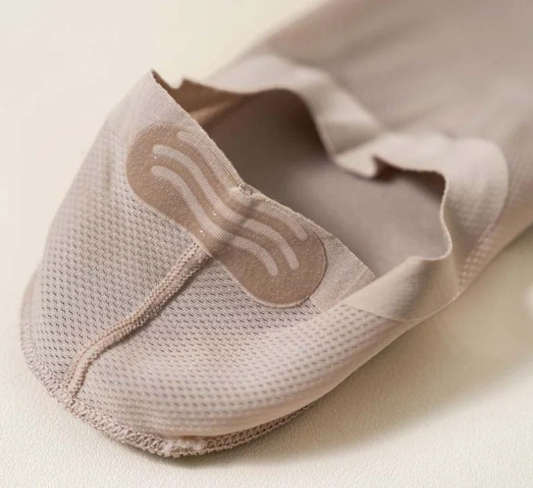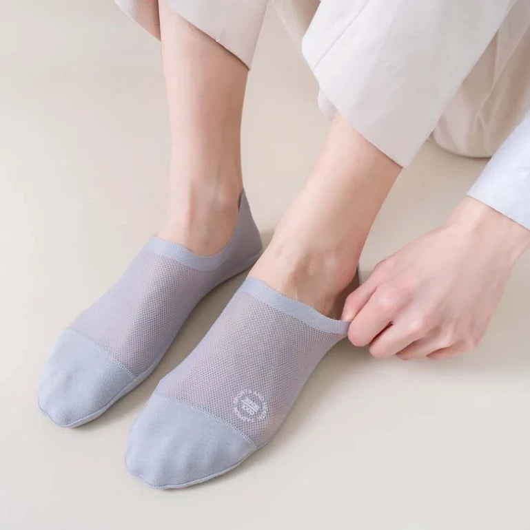 【Anti-Slip Design】This High-end Ice Silk Mesh Socks has a thick and wide silicone pad, which prevents the back from slipping and guarantees a comfortable fit.