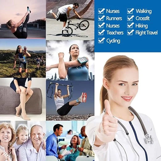Bring you well-designed compression support leg sleeves that provides graduated compression from the ankle to upper leg. Therapeutic compression hosiery which promotes blood circulation, helps relieve tired, aching, fatigued legs. Ideal for treatment of varicose and spider veins, diabetic support, long flights and general swelling or inflammation of the legs and feet.