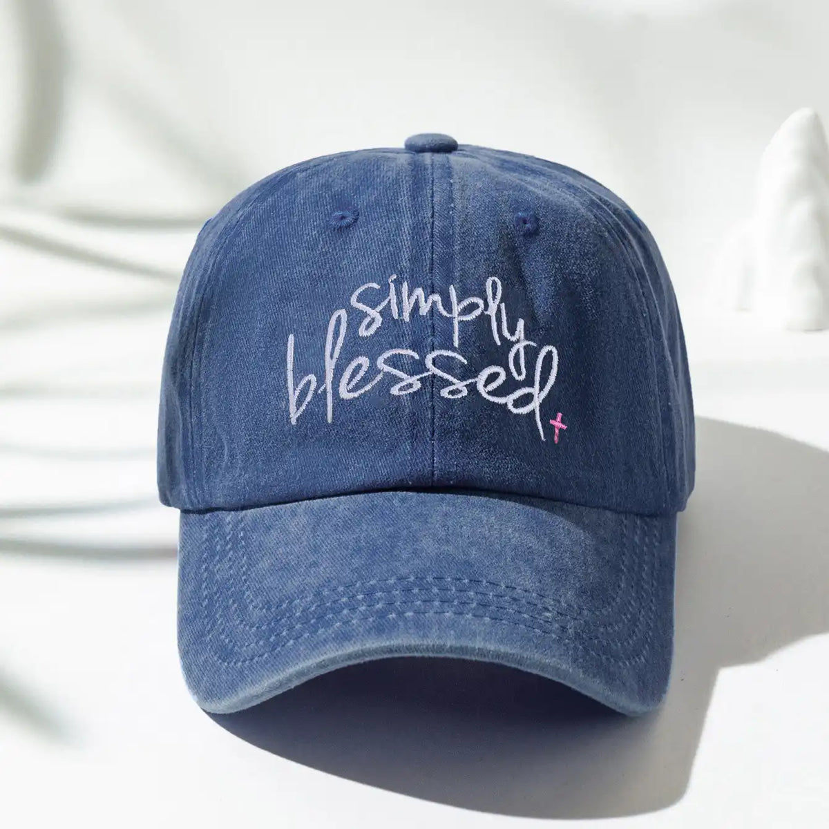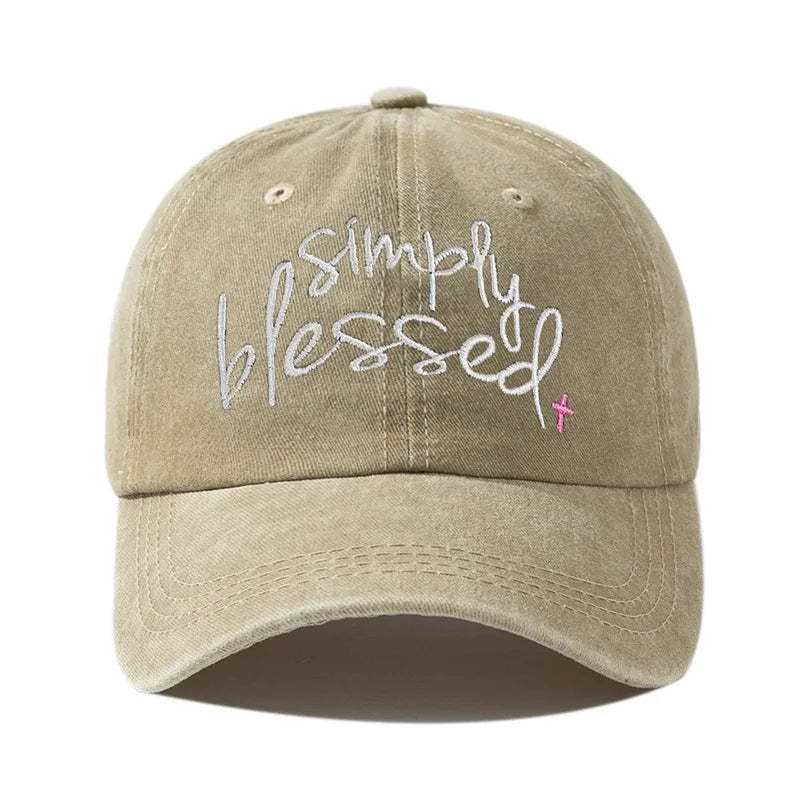 Simply Blessed Embroidered Distressed Baseball Cap