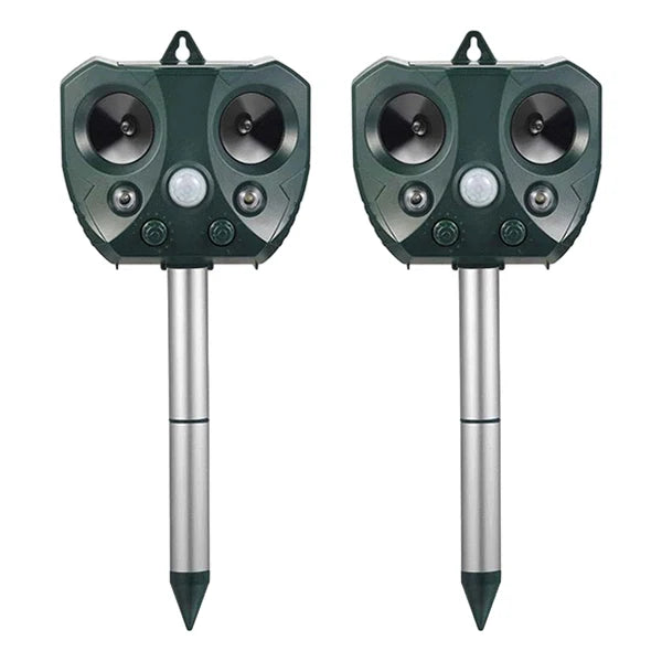 The Solar Ultrasonic Mice Repeller keeps unwanted animals away with powerful ultrasonic sounds and LED lights. It effectively repels rats, dogs, foxes, martens, cats, raccoons, badgers, skunks, bats, birds, rodents, and even boars using a range of frequencies from 5.5kHz to 45.5kHz. The device also features bright LED flashes to enhance its repelling power, making it a simple and effective solution for pest control.