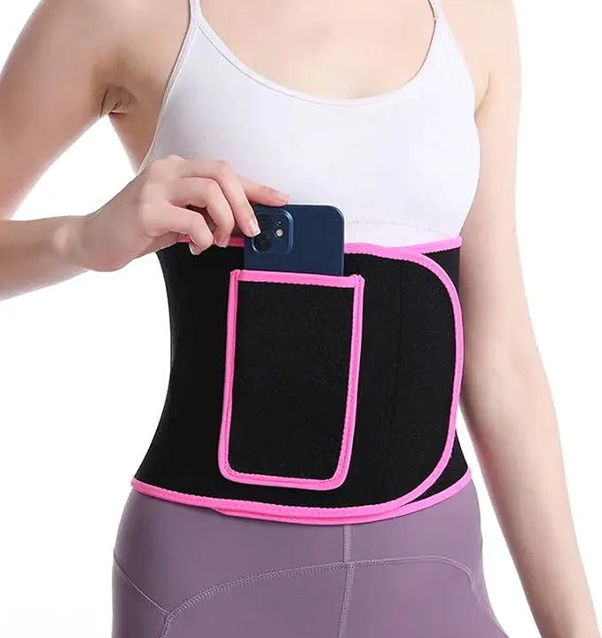 The slimming belt with cell phone holder is an innovative accessory that enhances your workouts. The nano-silver coating promotes perspiration, naturally accelerating weight loss. The cell phone pocket is compatible with most models, allowing you to stay connected during your workout.